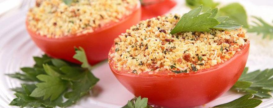 - First, cut the top off the tomatoes and remove the seeds. Put all of the other ingredients (except the butter) in a separate bowl and mix together. The mixture should be rather crumbly.