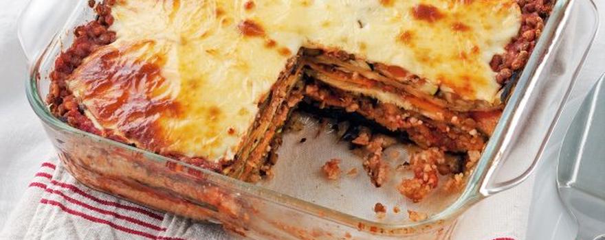 - Arrange one layer of butternut in the baking dish, followed by a layer of zucchini and a layer of eggplant. Pour enough of the tomato mixture to cover the vegetables.